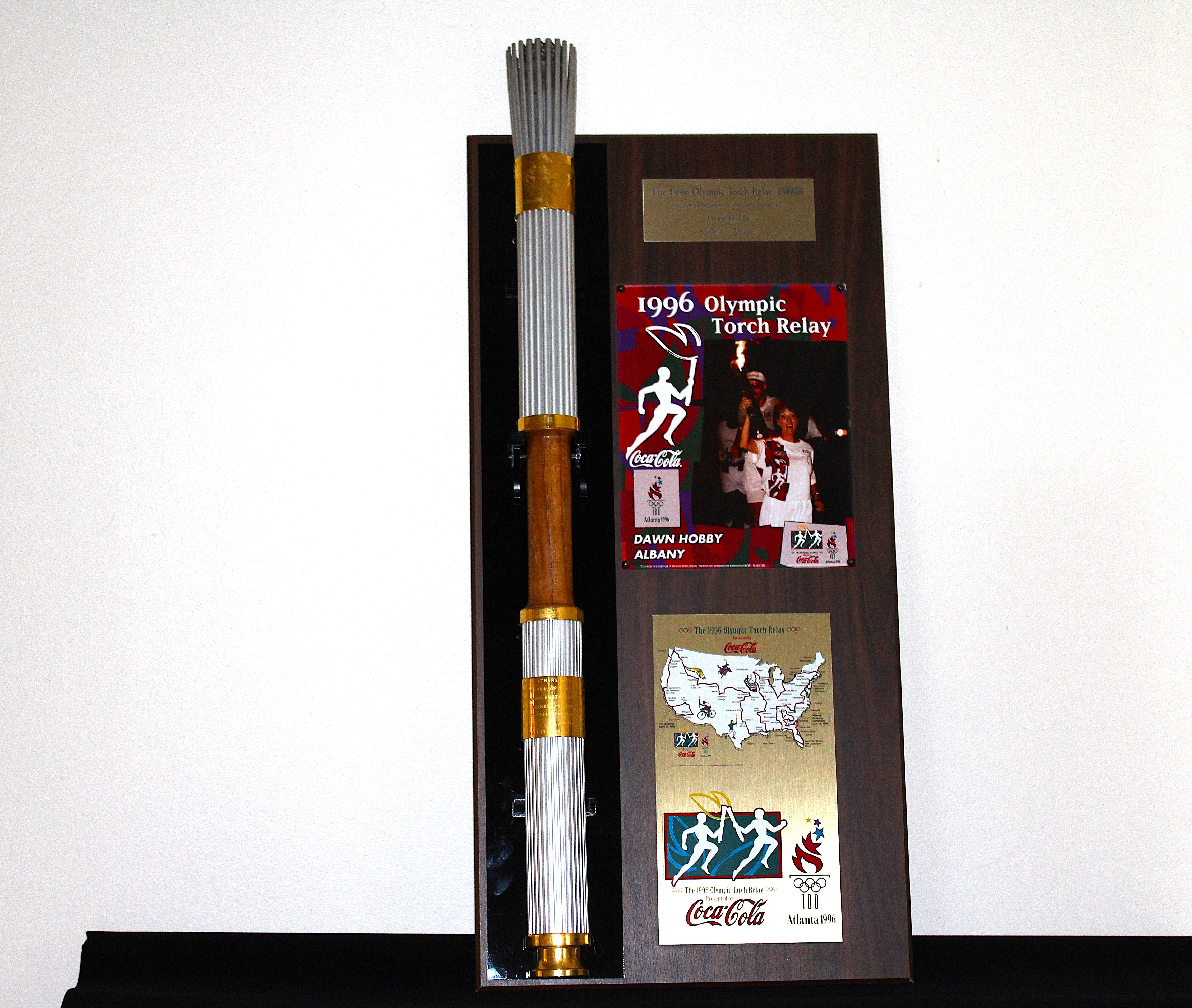 Presenting a Unique and Informative display of the Atlanta 1996 Olympic Games Torch.