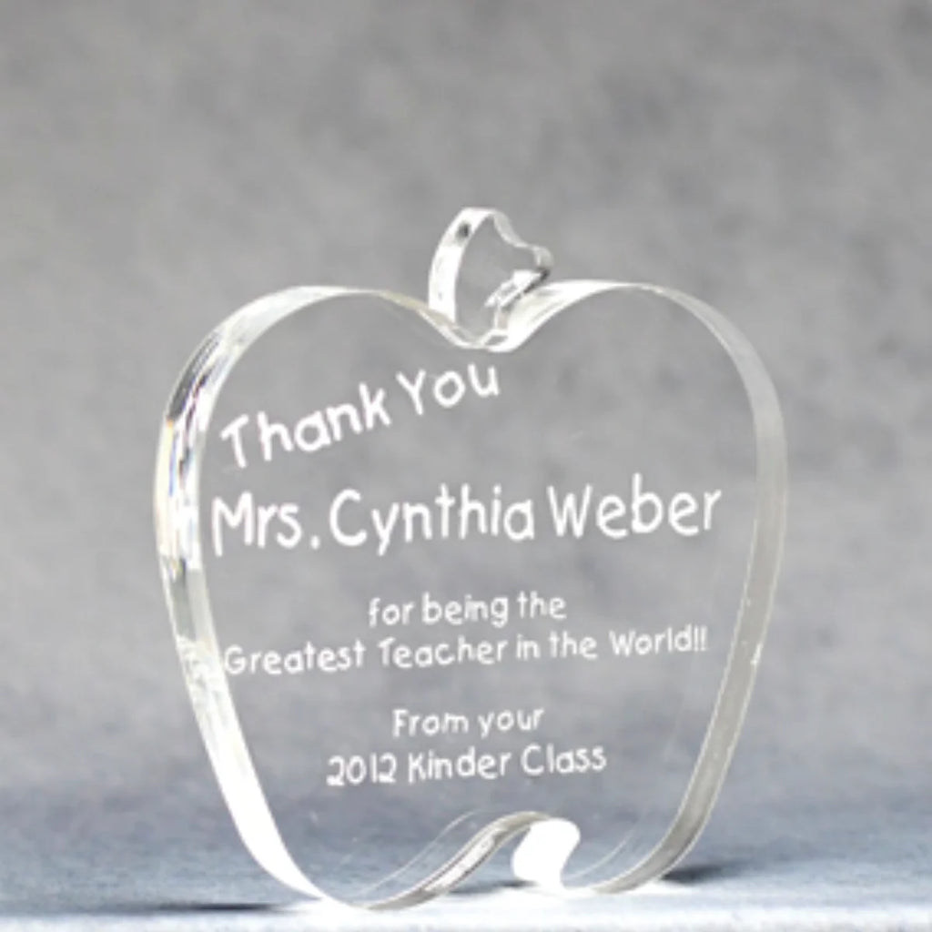 Looking for a unique way to show your appreciation to your favorite teacher? Look no further than our Clear Acrylic Apple Cutout! This beautifully crafted 5" apple-shaped cutout is made from high-quality clear acrylic and can be customized with your desired text or logo. It's the perfect gift to celebrate a special occasion or to simply say thank you. Order yours today and show your teacher just how much you care!