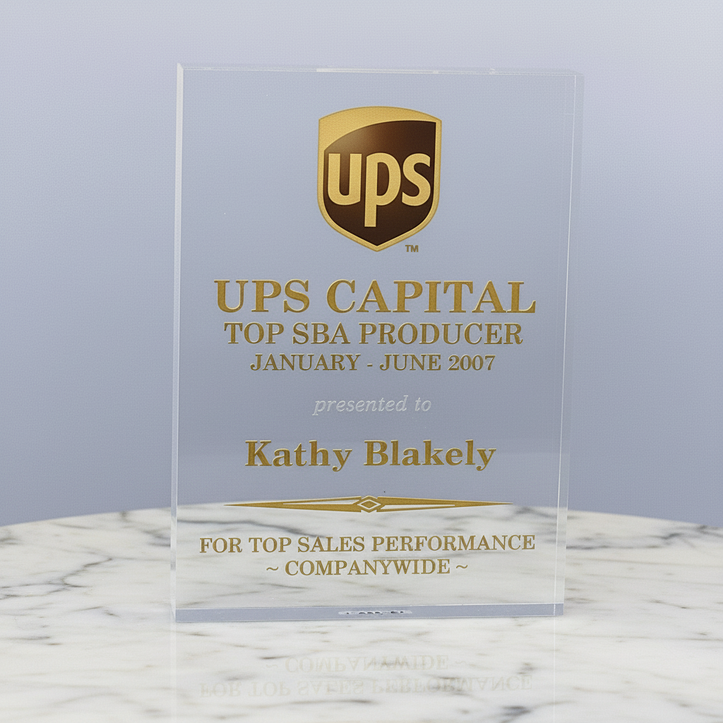 Crystal Clear Acrylic CAN BE LASER ENGRAVED, UV COLOR, OR A COMBINATION for vibrant high-quality details. Only restricted by your imagination. All items include lettering and logo. Available in 3" x 5", 4" x 6", and 5" x 7".