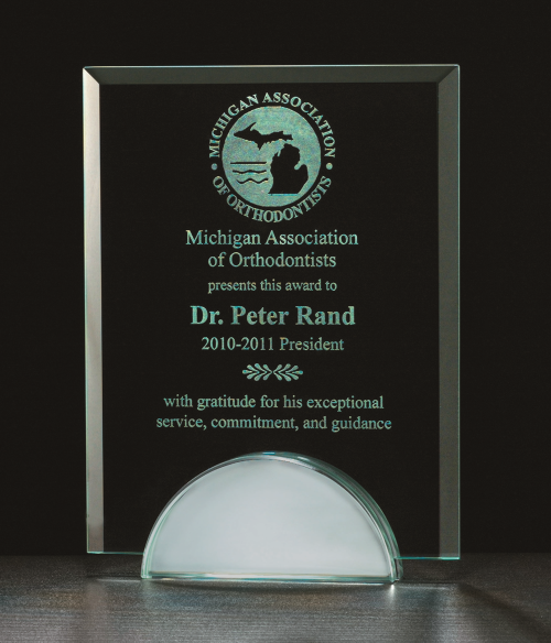 Apex Series Glass Award with Mirror Base, 1/2" thick jade glass suitable for laser engraving or sandblasting. These Glass Awards are packaged in satin-lined, padded gift boxes. All Glass Awards are preassembled, bases have protective rubber feet.
