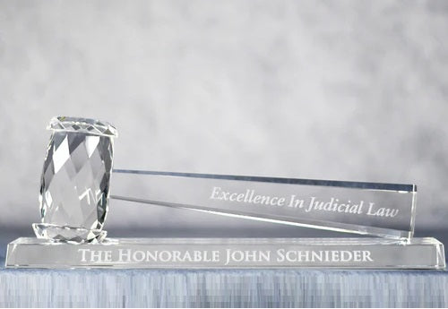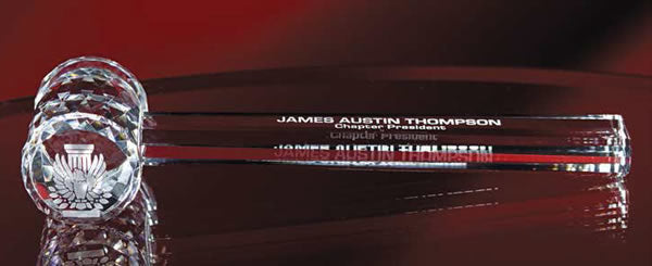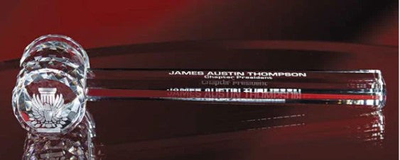 Although this beautiful crystal gavel can't call a meeting to order it will it will signify great accomplishments. This gavel is 10 inches long and can be engraved on the handle.