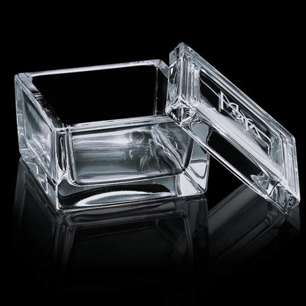 Glass square case is a high-class compliment to any desk and perfect for storing anything from paper clips to candy. Etched copy placed on top.