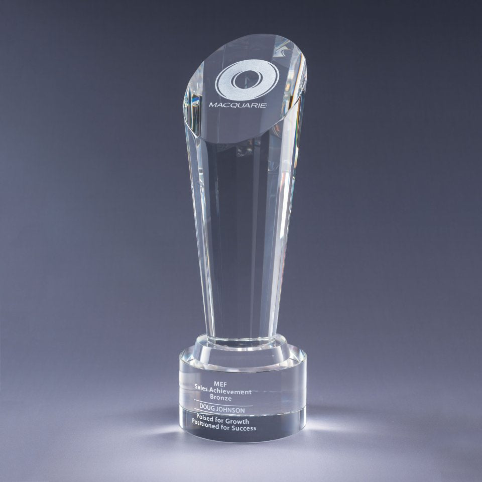 Our Focus Awards are the ultimate when it comes to shining light on achievement. Made from faceted optic crystal, these towering pieces reflect light, quality and your intent to reward with style.