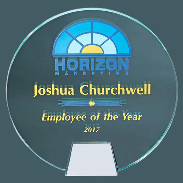 Stand out from the rest with a colorful design to recognize your top performers. Beautiful circular award on a chrome base. Available in 3 sizes.