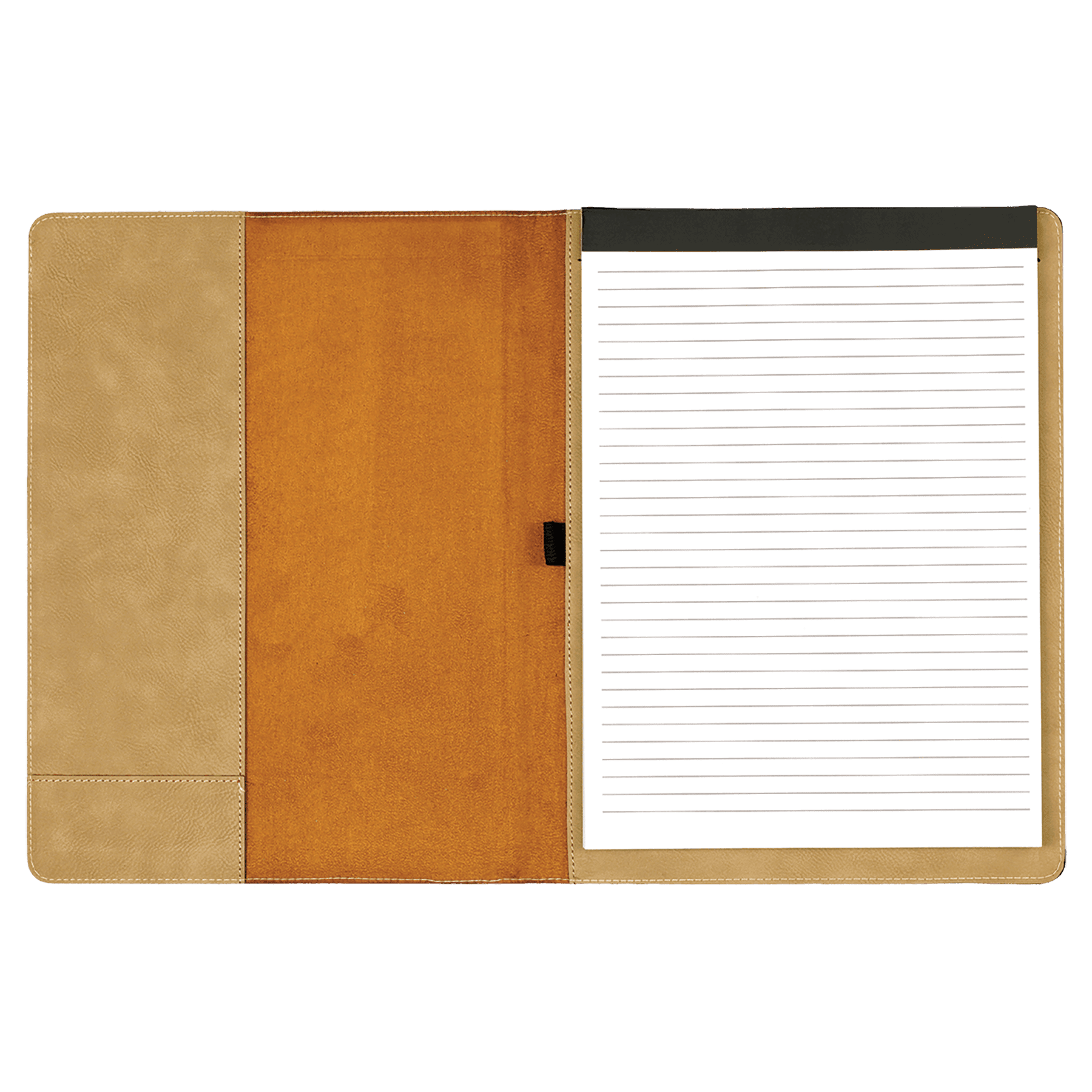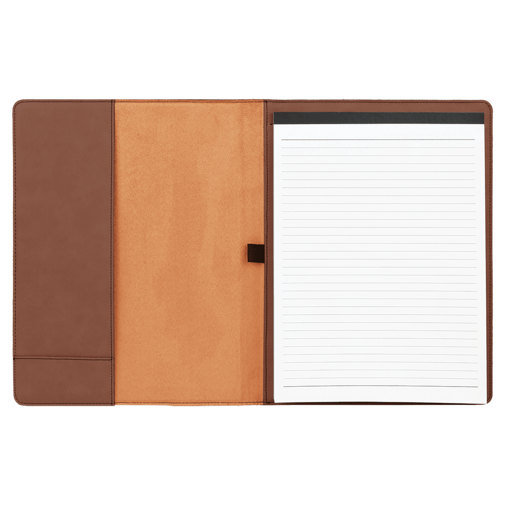 Professional Leather portfolio, ruled pad included. Available in dark brown and light brown. Individually boxed. 9.5 x 12.