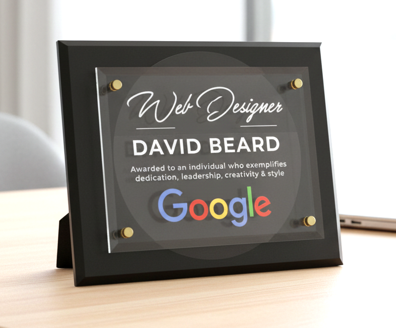 Elevate your recognition with modern sophistication. This striking black glass plaque features a sleek, high-gloss finish paired with a clear floating glass panel, elegantly mounted using premium metal standoffs. The layered design creates a dimensional effect that adds depth and prestige to any award or commemorative display. Perfect for corporate honors, milestone achievements, or personalized gifts, this plaque blends contemporary style with timeless elegance.