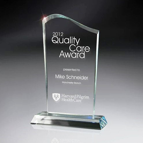 Our Optic Clear Crystal Wave Award with optic clear crystal base is a favorite for monthly or quarterly awards programs sure to please! Available in 7" and 8.5".