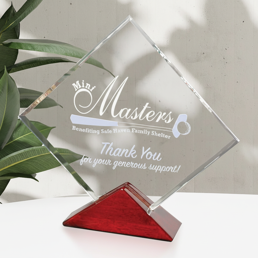 Opt for a Parkdale award and wow your recipient. A square of optical crystal with a message of appreciation will sit on a piano finished base. Your recipient will love it!