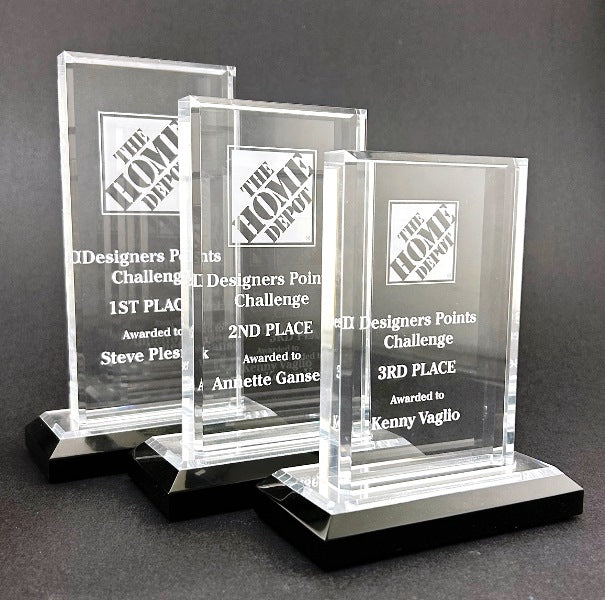 Recognize and reward your top achievers with this elegant Beveled Impress Acrylic Award. This Lucite trophy comes standard with laser engraving. As with most of our acrylic trophies, it can also be UV Printed in full color.