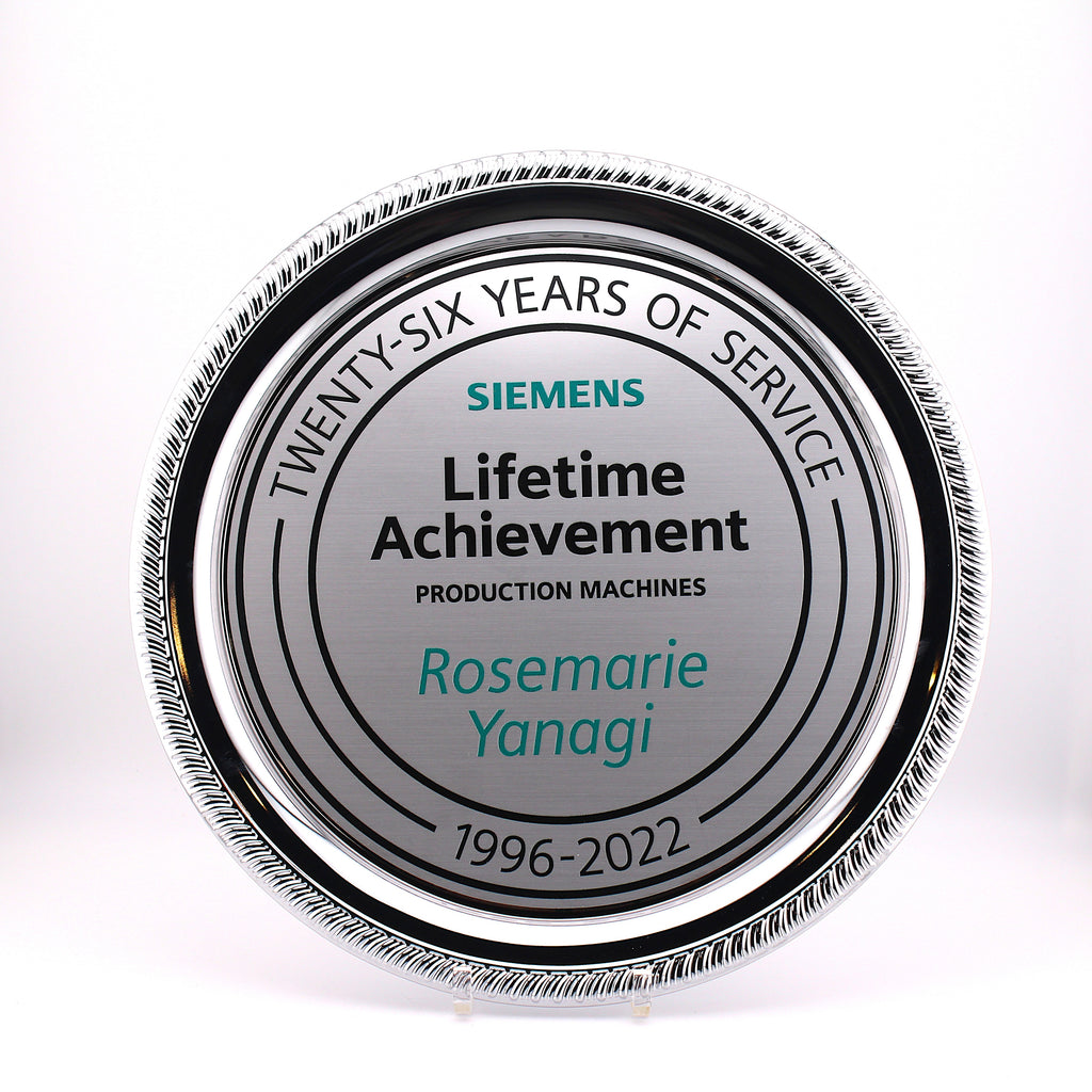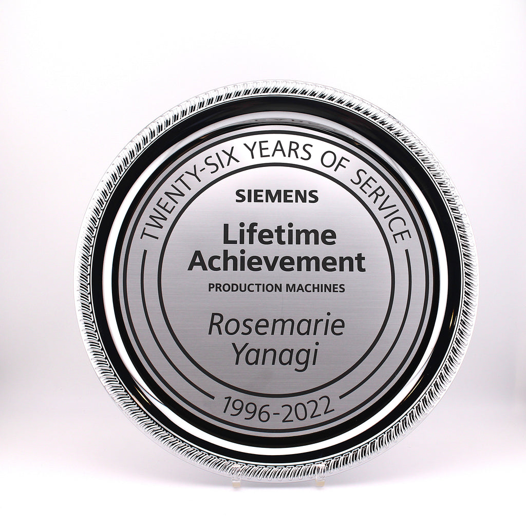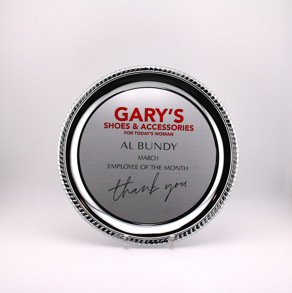 Elevate your recognition game with our stunning silver chrome round plates, perfect for engraving. Its sleek, polished surface offers a modern touch for awards, capturing attention and celebrating achievements. Ideal for corporate events, sports competitions, or special milestones. Make every accolade shine! Also available with a gold center (last photo).