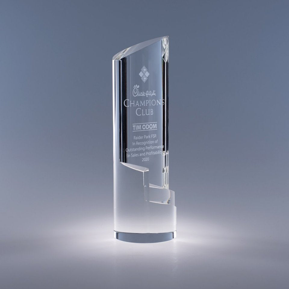 A metaphor for the journey to success, our well-designed Trek Award says it like no other. Featuring a rhythmic series of curvilinears, this piece moves the eye upward reflecting one’s ascent to the top.